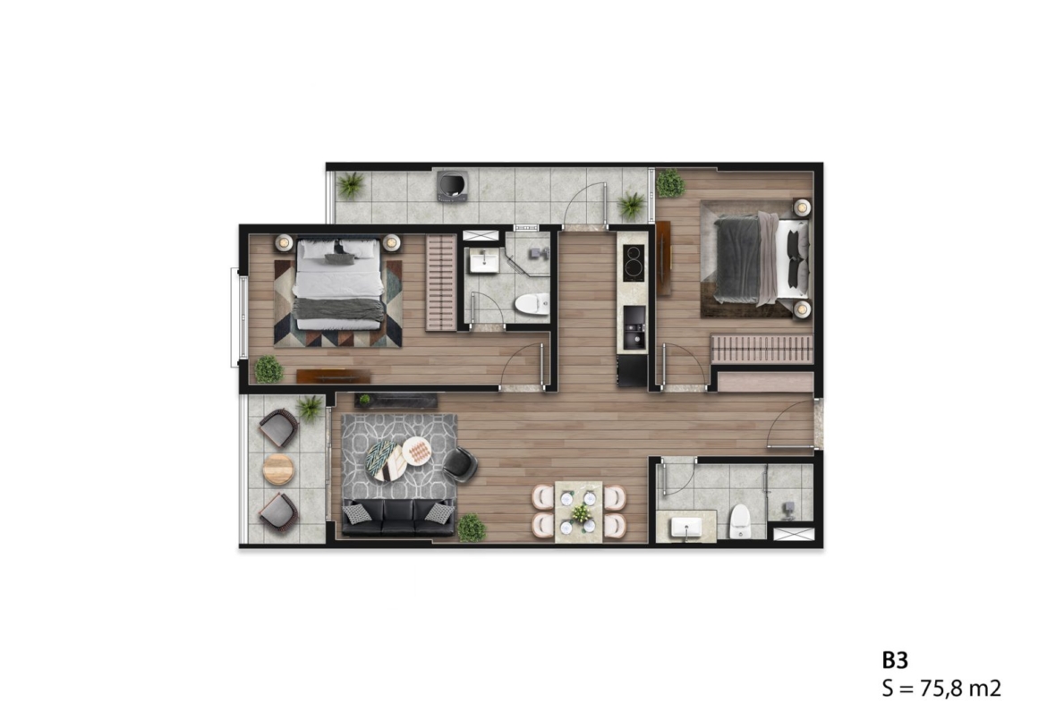 - Loại căn: A3 – 2 ngủ + 1 phòng làm việc