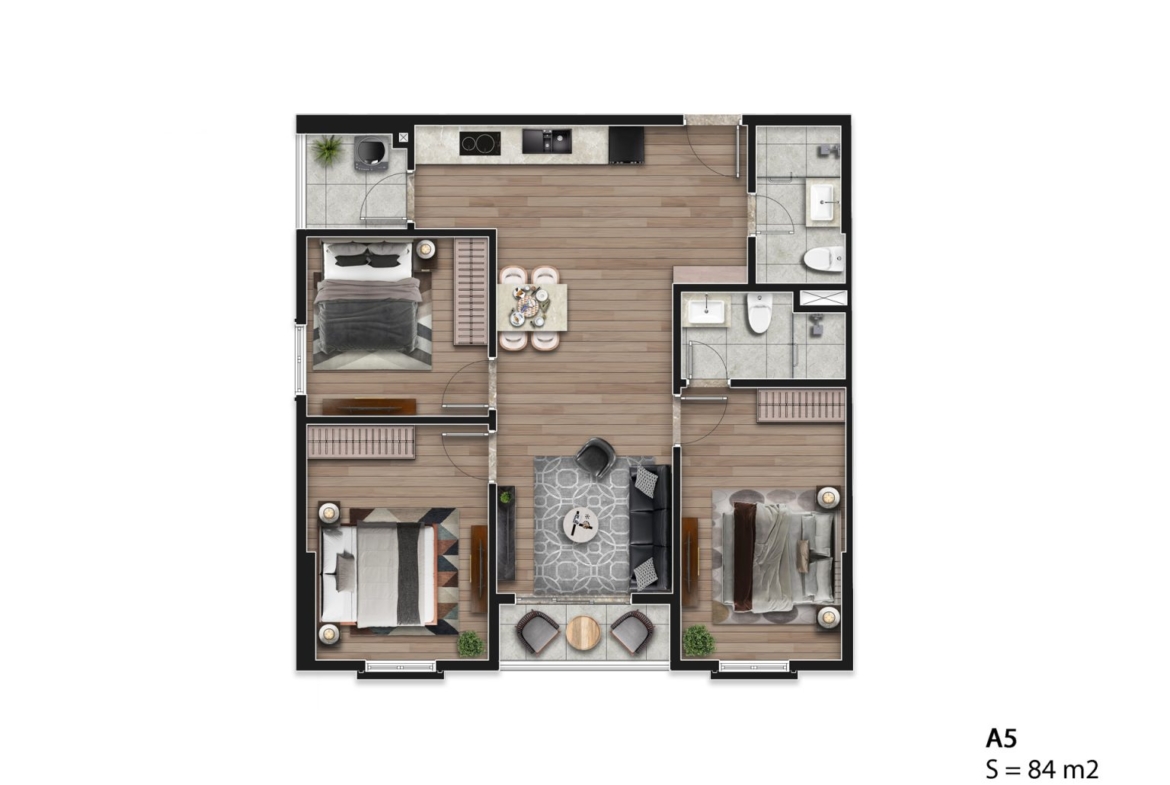 Tại Hausman Premium Residences, các căn 3 phòng ngủ không nằm dàn trải mà được ưu tiên đặt tại những vị trí “vàng” của mỗi tòa tháp. Đây là những mã căn sở hữu từ 2 đến 3 mặt thoáng, tận dụng tối đa lợi thế của các mẫu thiết kế A1, A2, A5, A6, A7 để kiến tạo tầm nhìn không giới hạn.