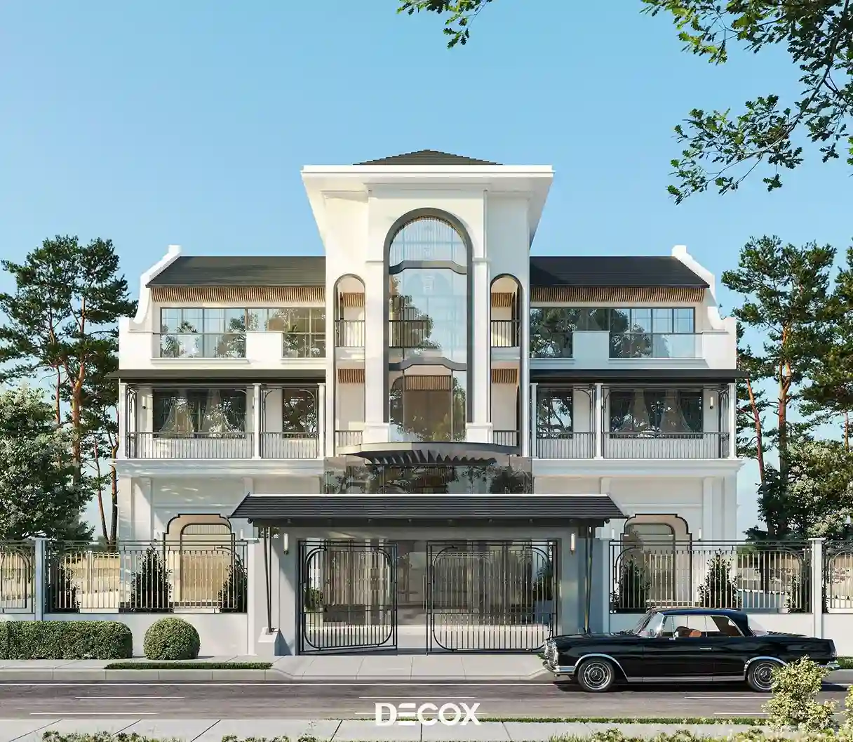 - Đặc trưng: Giữ lại các chi tiết phào chỉ, tỷ lệ đối xứng và mái Mansard lộng lẫy nhưng được tinh giản hóa. Thức cột Ionic và Doric thường được sử dụng để tạo sự vững chãi và uyển chuyển.