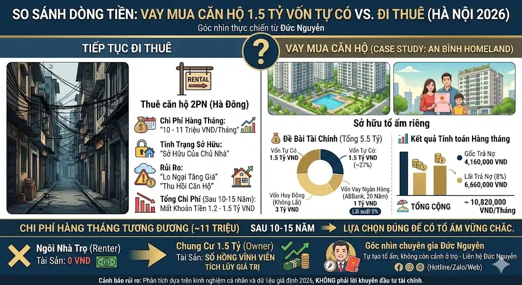 3. Sự thật dòng tiền: Vay mua chung cư 1.5 tỷ phía Tây Hà Nội hay tiếp tục đi thuê?