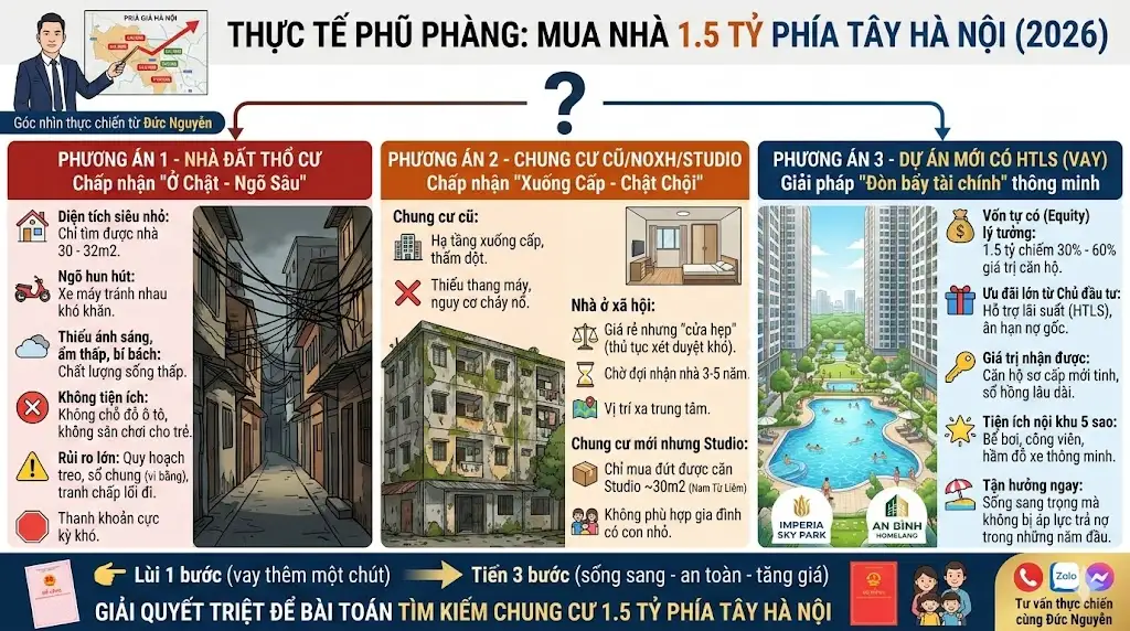 1. Thực tế phũ phàng khi tìm mua chung cư 1.5 tỷ phía Tây Hà Nội năm 2026